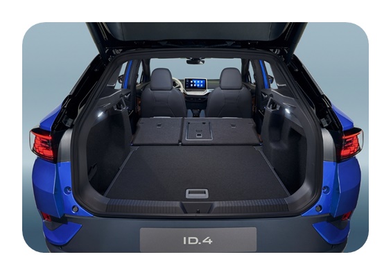 ID4는 전기차 전용 MEB플랫폼으로 만들어 컴팩트 SUV지만 차급을 뛰어넘는 여유로운 실내 공간을 자랑하고 있는데요. 트렁크 공간은 기본 543L로 2열 시트를 접게되면 최대 1,575L까지 확장이 가능합니다.