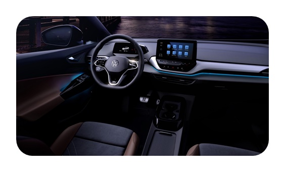 ID4에는 폭스바겐의 혁신적인 지능형 라이팅 시스템인 IQ라이트도 적용이 되었는데요. 일부 상위 트림에 기본 제공되는 매트릭스 헤드라이트는 차량이 잠금 또는 해제될 때 렌즈 모듈을 회전시키는 웰컴 라이트로 작동하고, 지능적으로 컨트롤 되는 메인 빔은 다른 차량의 운전자들을 눈부시게 하지 않고 도로를 밝게 비춰줍니다.